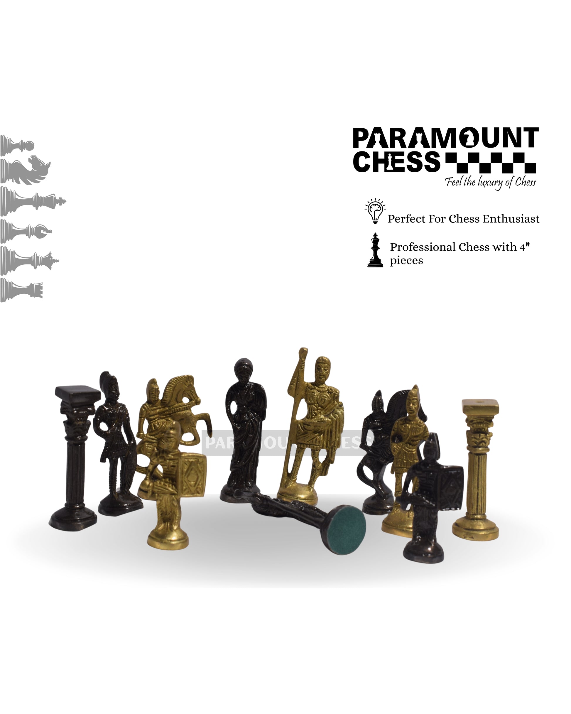 🏛️ Paramount Roman Brass Metal Chess Pieces Set ♟️ Golden & Black Finish | Without Board