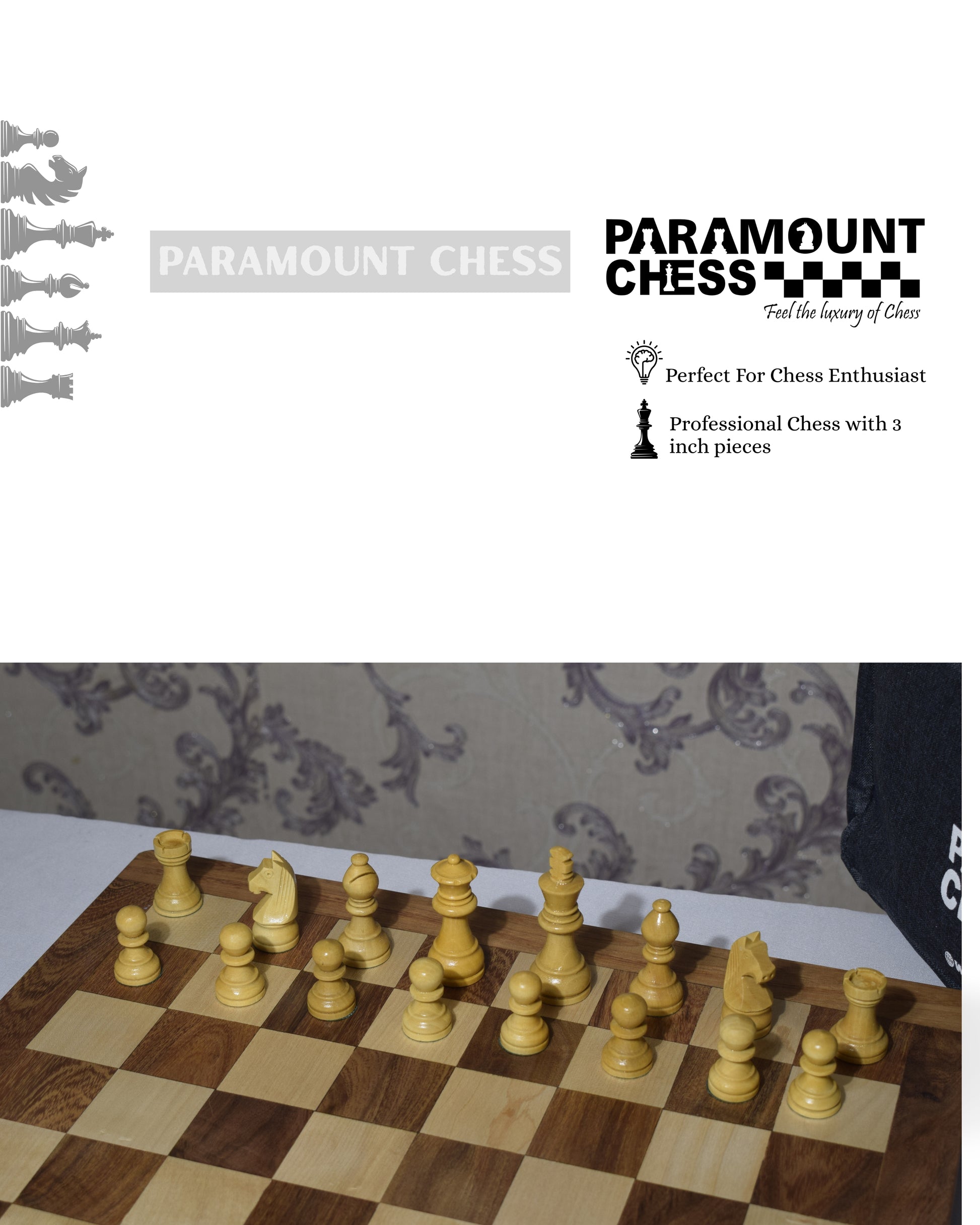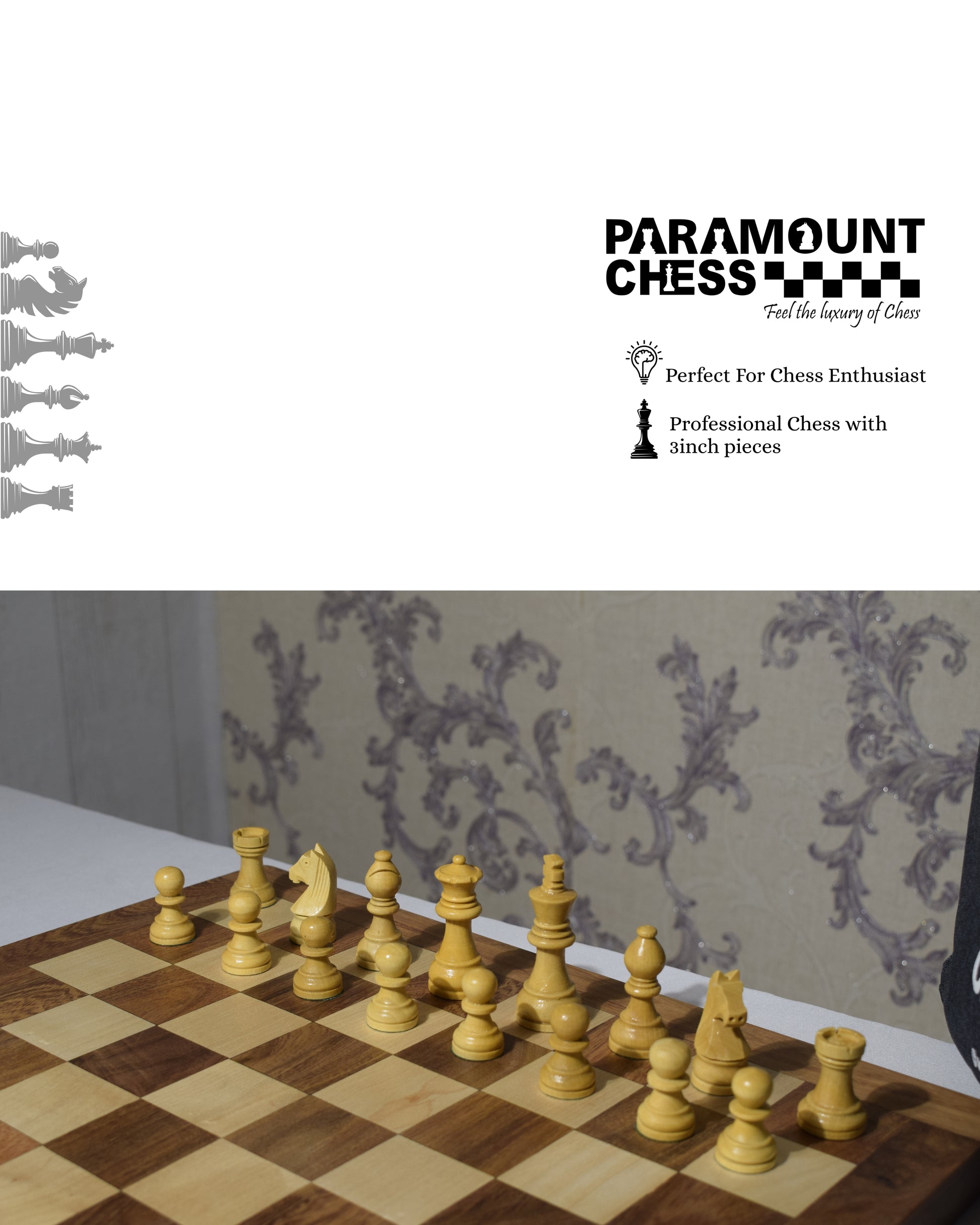 - Chess Pieces size: 3" King height
